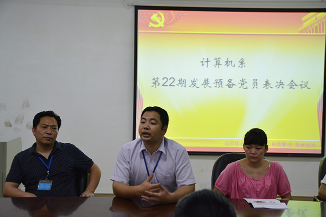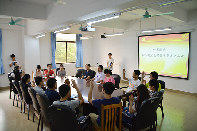 5月16,计算机系第一学生党支部召开第22批党员发展对象表决大会。计算机系党总支书记彭康煜,办公室主任袁主任,团总支书记何祉谕,第一党支部各支委,正式党员及预备党员参加本次会议。