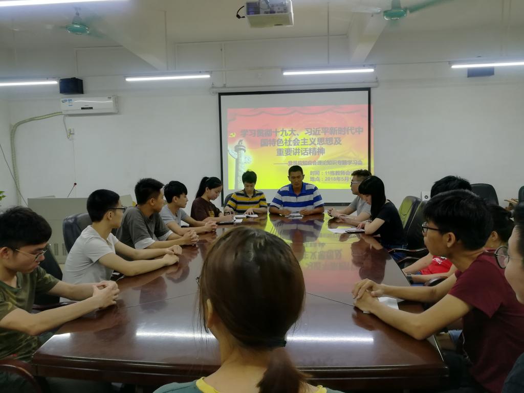 (通讯员 张伊凡)2018年5月1日,williamhill英国官网学生党支部开展“学习贯彻十九大、习近平新时代中国特色社会主义思想及重要讲话精神”专题学习会。出席本次会议的有williamhill英国官网党总支副书记刘亮、学生党支部书记黄鸿鑫以及全体学生党员。