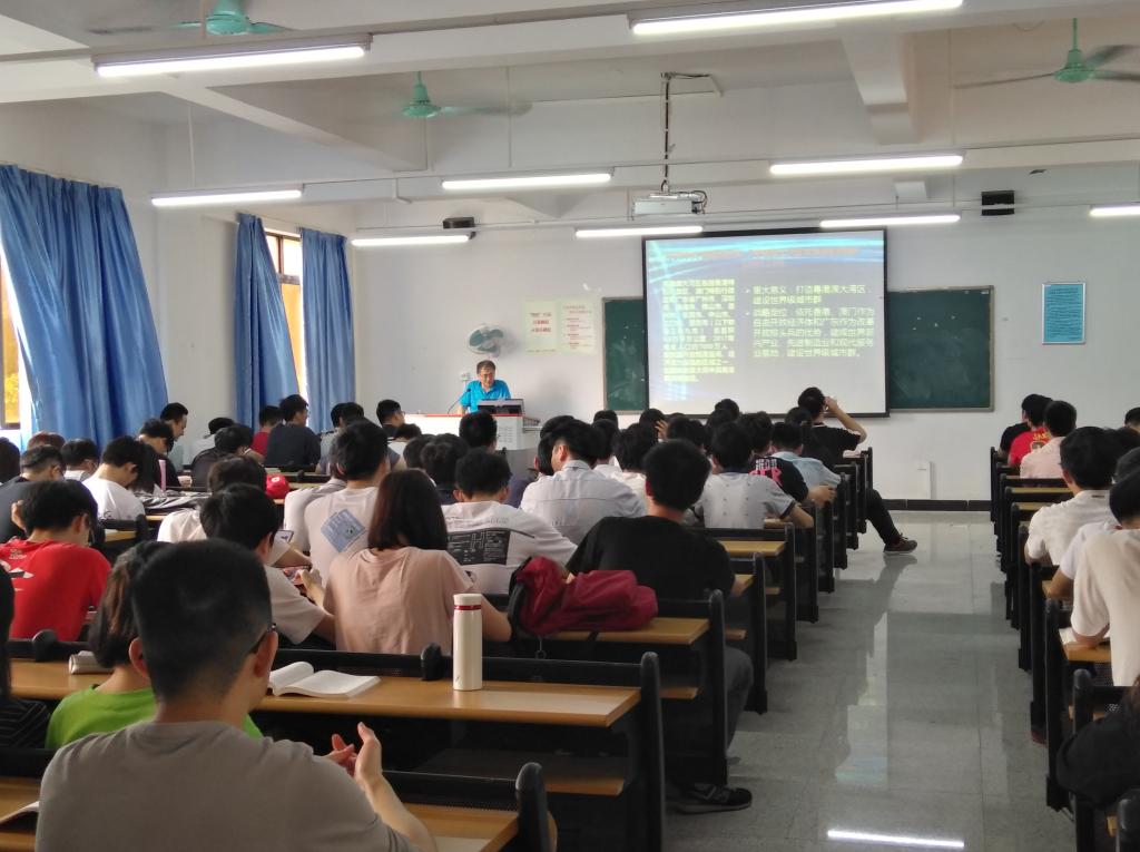 原峰山院长以《粤港澳大湾区建设与我们的机遇》为主题,给学生们深入解读粤港澳大湾区发展规划纲要,从国际和国内两个方面分析国家的战略布局,号召同学们要把自身的发展与我们所处的有利环境结合起来,鼓励同学们增强专业自信、狠抓机遇、建功立业。这一节粤港澳大湾区的剖析课,让学生们获益良多。课后,17网工1班林孟海说:“粤港澳大湾区对于我们当代大学生来说是一个可遇不可求的机遇,特别是我们网工专业的学生,在这个信息时代,移动互联网、云计算、大数据等世界前沿科技都是我们未来进击粤港澳大湾区的主要武器。听完院长这节课,我内心颇有感触,对自己的未来的职业道路充满了信心,我们要遵循“创新驱动,改革引领”的创新精神,为全国科技力量做贡献!”