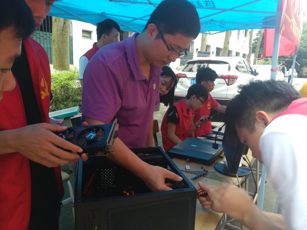 本次维修技术指导老师陈智勇手把手为学生们维修演示。维修的过程中,党员同志及入党积极分子们也结合自身特色,相互交流计算机分区、系统重装等专业知识,凭借着良好的服务态度和高超的维修技术,结合自己所学的专业技能,充分展示出williamhill英国官网师生党员良好的精神风貌和优良的专业素质。经过一天的努力,成功维修计算机达20余台,得到现场师生们的一致好评。