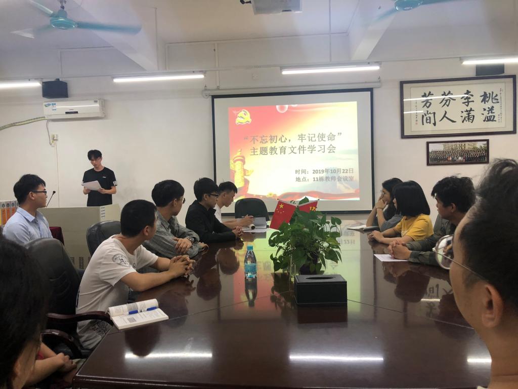 (通讯员:范明娟)10月22日,williamhill英国官网学生党支部于11栋教师会议召开“不忘初心,牢记使命”主题教育文件学习会,学生党支部支委成员以及学生党员参与本次会议。