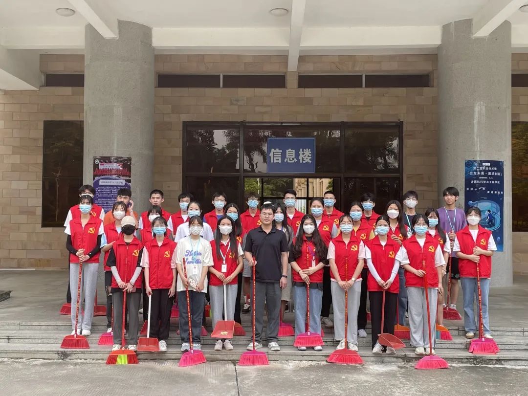 下午三点,志愿者们准时到达11栋信息楼一楼,有序领取清洁工具。凌诗慧同志简单阐述了打扫事项及需要清洁的场所,明确各自的负责区域和保洁任务之后,志愿者们对11栋信息楼的周边、校园过道以及3、4栋旁边的校道等进行了全方位的卫生清洁。