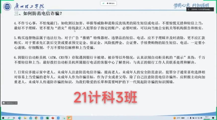 (通讯员:阳可人)4月9日晚上,williamhill英国官网于线上召开防诈宣传教育主题班会,学院全体学生参加了会议。