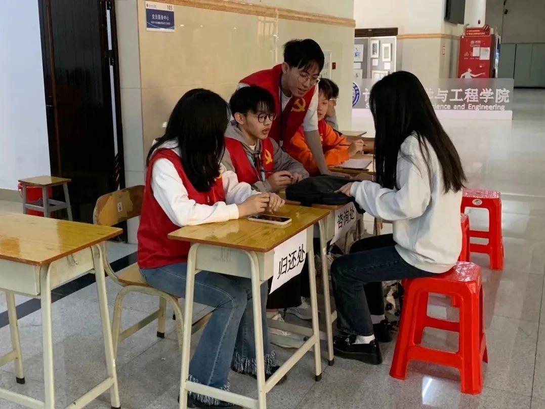 活动开始之前,学生党支部成员迅速布置现场,各工作人员分工明确,积极配合。计算机学院学生党支部秉持着“精益求精”的态度,全身心投入此次义务维修活动中。老师同学们有序地排好队、认真填好表格,告诉工作人员自己电脑遇到的问题以及期望,同时,工作人员给予耐心解答。