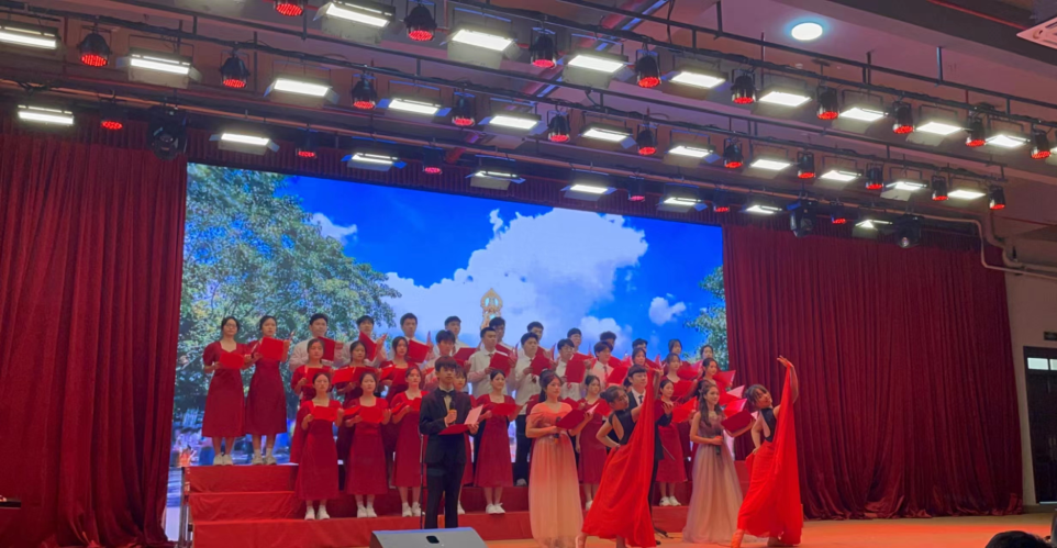 计算机学院代表队是由学院学生第三党支部统筹策划,其他学生党支部配合协助,从选人到训练再到比赛,从整体编排到细节设计,从前期朗诵人员的确定,到积极鼓励学院同学参与,党支部的师生都严谨认真的讨论、推荐与复盘,最终敲定41名师生组成朗诵队伍。经过数天日复一日的训练,在28日上午,大家精神饱满,女生身穿红裙,预示中国红;男生身着白衫,到台上很好地展示中华男儿英姿。台上大家齐颂《美丽中国》,以古朴雅韵的古筝为开端,以红袖飘飘的舞蹈为点缀,大家激情澎湃、热血激昂,颂出了对祖国的壮丽赞美,颂出了生在红旗下的幸福。最后,经过激烈的角逐和评委的打分,最终williamhill英国官网朗诵队取得全校二等奖的佳绩!