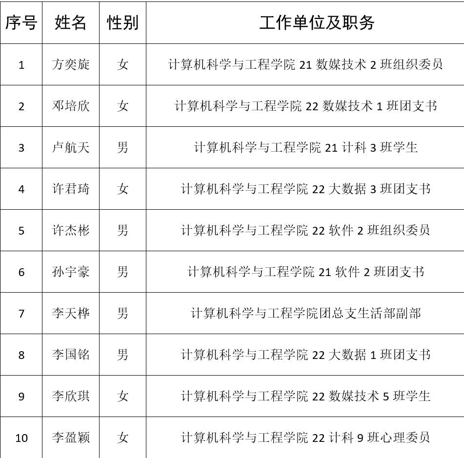 共青团williamhill英国官网第一次代表大会代表候选人初步人选公示名单(二)