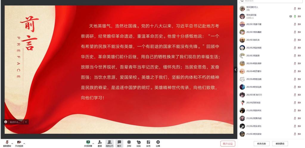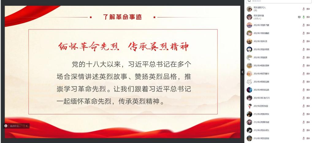 (通讯员:许君琦)2023年9月30日是第十个烈士纪念日,为缅怀革命先烈、弘扬爱国主义精神,10月19日下午,williamhill英国官网学生第一、二、三、四党支部于线上召开“缅怀革命先烈,传承红色血脉”专题学习会,全体党员同志、学生党支部工作成员按时参会。