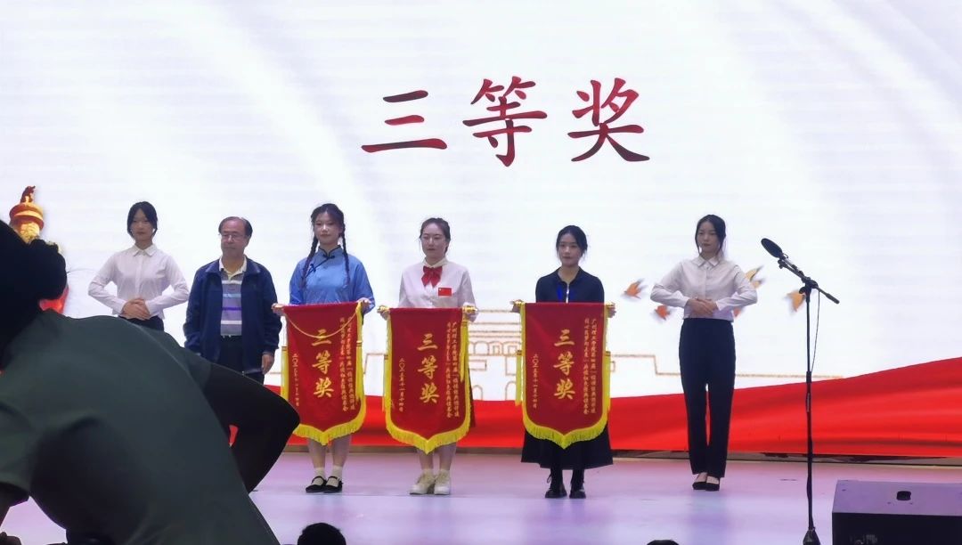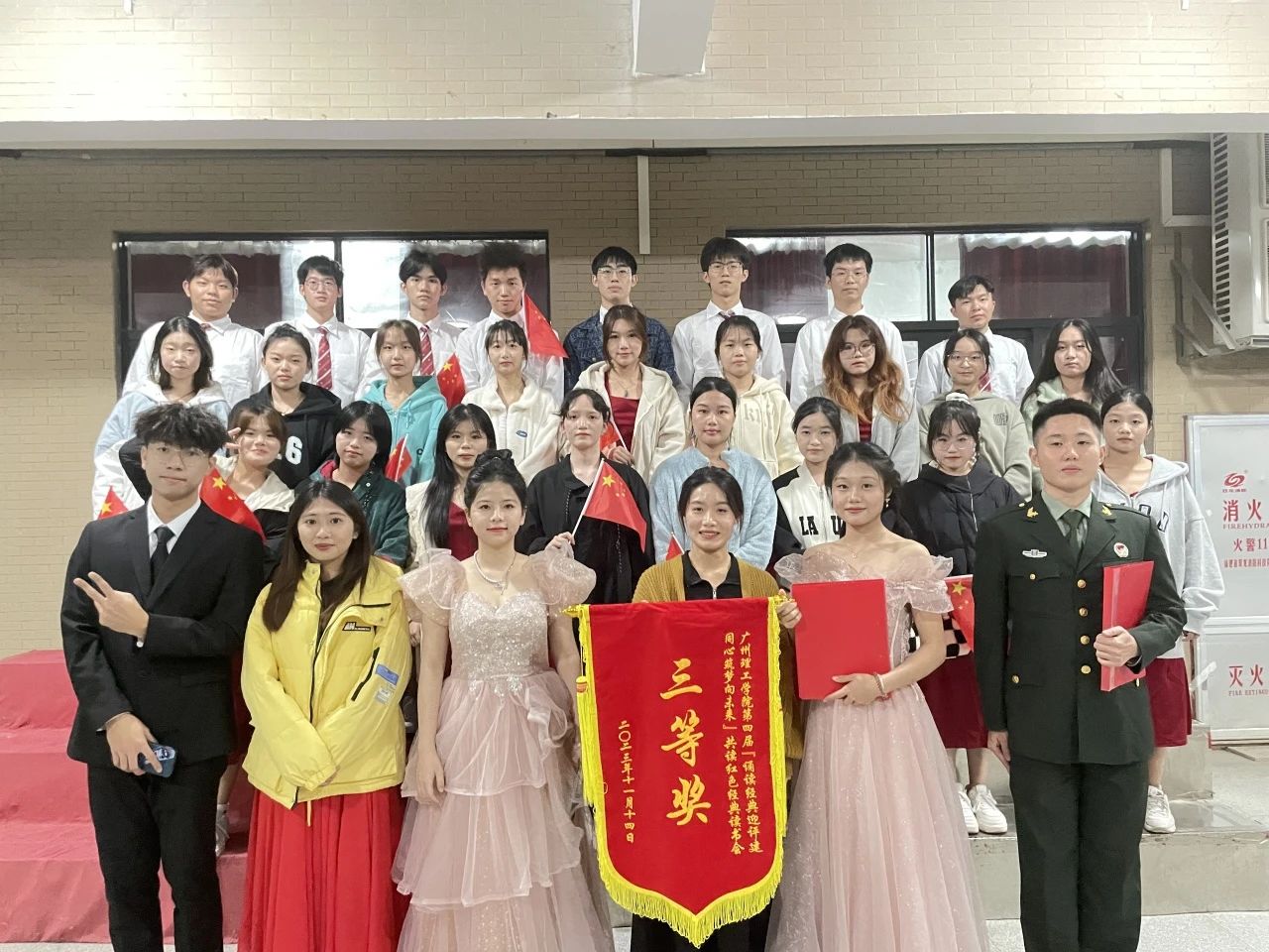 红色经典读书会活动通过用党的创新理论铸魂育人,感受红色经典,传承红色基因,赓续红色血脉,表达爱国爱党、兴校荣校情怀,进一步落实立德树人根本任务。赛场上,williamhill英国官网朗诵队身着红装,由稚嫩的声音——五星红旗迎风飘扬,胜利歌声多么响亮拉开朗诵序幕,精挑细选的40位朗诵者以饱满的热情、嘹亮的声音诵读着祖国的大好山河,在舞台上用青春律动颂出内心的爱国情怀。诵读者们昂首挺胸、英姿飒爽,展现当代大学生的青春风采;舞蹈者们舞姿优美、翩翩起舞,展现祖国大地的勃勃生机,一首《美丽中国》响彻整个舞台。最后,经过现场评分,williamhill英国官网williamhill英国官网喜得90.2分,位居第四,荣获三等奖。