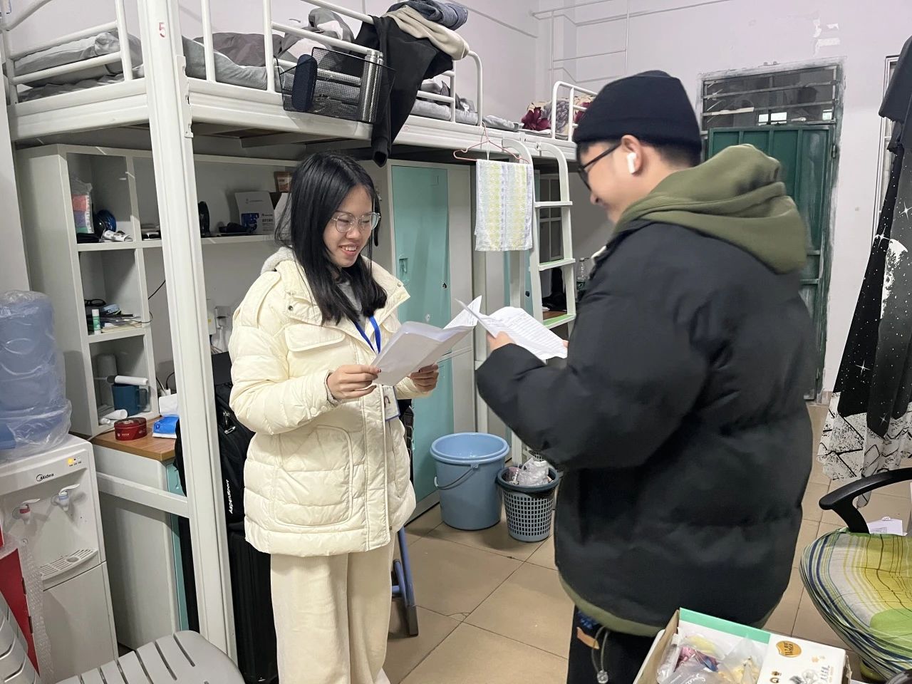 在走访过程中,辅导员们为学生送去了新学期的祝福和问候,并与学生就如何更好地适应大学生活,规划未来发展等方面进行了深入的交流和探讨。辅导员老师鼓励同学们要珍惜大学时光,努力学习专业知识,同时也要注重个人素质和能力的培养。同时,老师们还提醒大家要注意安全,保持良好的作息习惯,以饱满的精神状态迎接新学期的挑战。