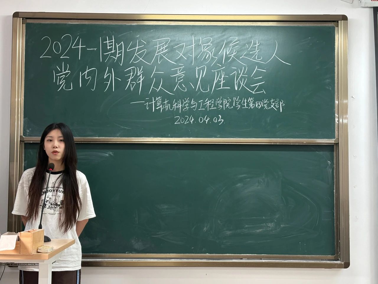 学生第四党支部副书记崔晓婷同志进行总结发言。她对发展对象候选人说:“每一次站在讲台上的发言都是一种承诺和责任。希望各位同志能够牢记今天在会议上的发言,将初心铭记在心中,坚定信念,在日常生活和工作中践行党的宗旨,勇敢担当,奋力前行。”