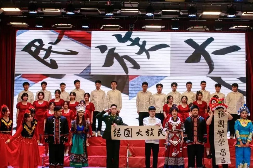 经过数天日复一日的训练,大家精神饱满,身着民族服饰,台上齐颂《民族大团结》,以舞狮和英歌舞作为开场,展示广东特色文化;随后随着舒缓的音乐,大家有感情的大声朗诵,中途以新疆特色新疆舞为插曲,感受红色的热情,最后以书法结尾,写出了民族的团结,颂出了民族的力量。最后,经过激烈的角逐和评委的打分,最终williamhill英国官网取得三等奖的佳绩!