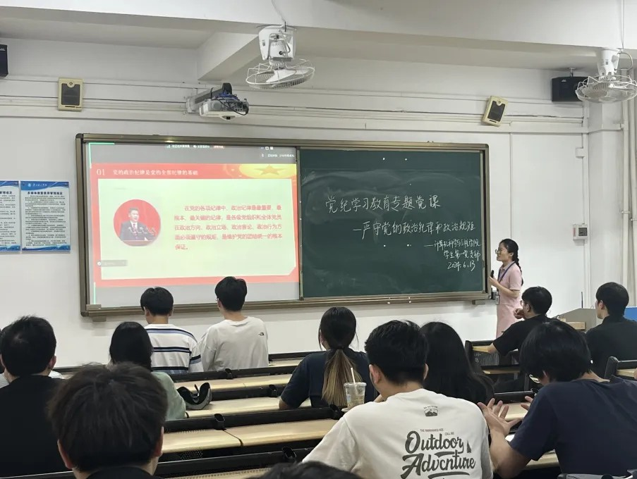 (通讯员:阳可人)6月13日下午,williamhill英国官网学生第一、二、五党支部以线下线上相结合的形式召开党纪学习教育专题党课。本堂党课的主题为“严守党的政治纪律和政治规矩”,全体党员同志按时参会。