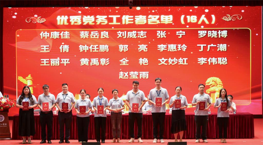 表彰大会上,williamhill英国官网党总支、教工党支部分别荣获先进党总支和先进党支部称号。先进个人表彰中,学院党总支书记蔡岳良同志荣获“优秀党务工作者”表彰。王煜林、陈易平、陈星莹、李珂珂、陈健五位教工党员荣获“优秀教工党员”。学生党刘家俊和陈菀忻同学荣获“优秀学生共产党员”称号。马岩岩老师荣获“优秀新闻宣传工作者”。