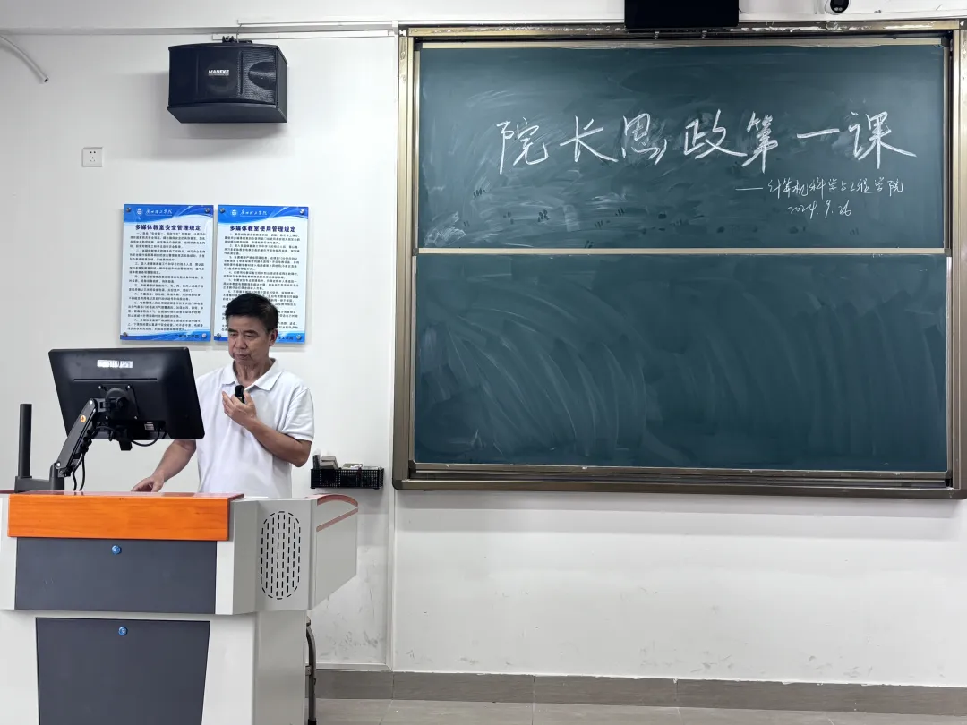 (通讯员:陈彩风)9月26日上午,计算机学院院长贺敏伟在13栋401室为同学们讲授2024年秋季学期“思政第一课”,23级计算机科学与技术、数媒技术、软件工程专业180名学生代表参与此次课程。