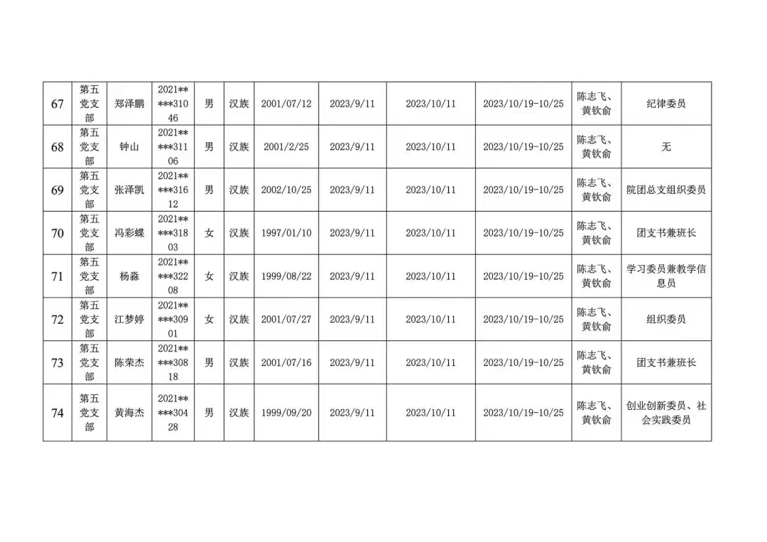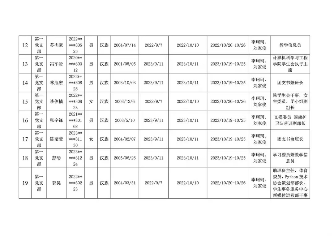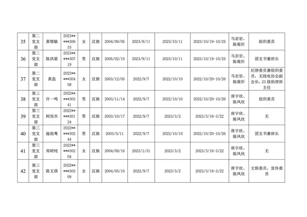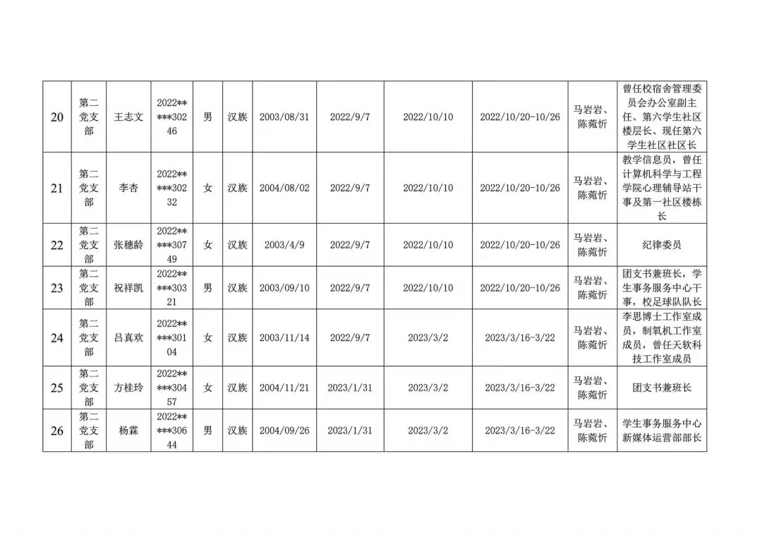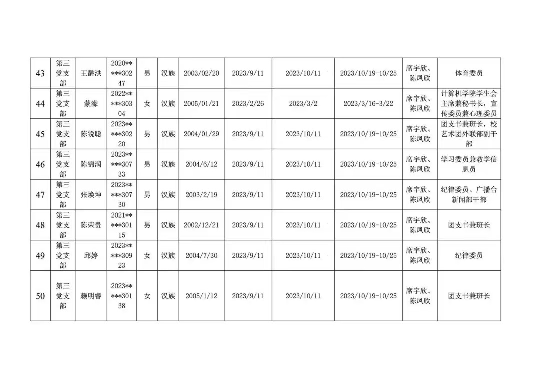 发展对象公示名单