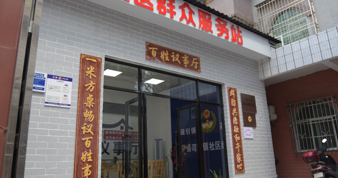 在韶关市司前镇社区群众服务站,为当地的人民群众设立了百姓议事厅的议事场所,专门为群众解决生活工作上难题矛盾,提升街坊邻里的幸福感,获得感和安全感,团结人民群众,踏踏实实为人民群众解决问题,真真正正做到全心全意为人民服务的宗旨。