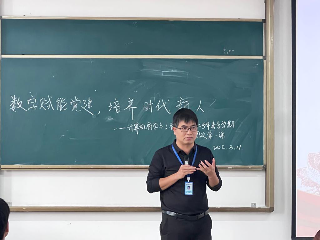 本次思政第一课由学院党总支书记蔡岳良主讲,他结合当前全球科技革命的新形势,特别是人工智能、云计算、物联网等数字化技术的迅猛发展,强调了高校党建工作在新时代背景下的重要性和紧迫性。蔡书记指出,高校作为科技创新的前沿阵地,必须坚定不移地坚持党的领导,不断优化党建工作方法,以党建引领学院教育事业在数字化时代实现高质量发展,蔡书记通过一系列生动的案例和数据,向同学们展示了人工智能等数字化技术在推动社会各行业变革中的核心作用。他特别提到了中国人工智能初创企业DeepSeek(深度求索)的崛起,该公司以低成本、高性能和开源的特点,迅速在全球范围内引起了广泛关注,成为中国创新实力的有力证明。蔡书记鼓励同学们要紧跟时代步伐,积极拥抱人工智能等新技术,努力成为新时代的弄潮儿。