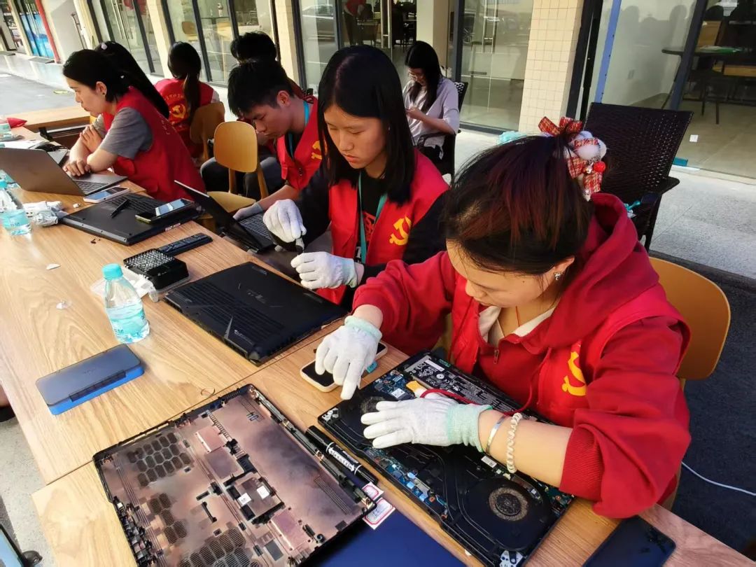 活动开始前,负责后勤的志愿者们提前到达活动现场进行场地布置,为活动的开展做好充足的准备。活动开展时,咨询组的志愿者们耐心负责地为前来咨询的师生提供协助,并协同归还组的志愿者们,登记好每台送来维修的电脑,保证了每台电脑完好无损地送来、完整无缺地归还。在党建工作人员地大力宣传下,本次活动吸引了众多同学的积极参与,他们纷纷将自己的电脑送来维修。面对大量的电脑维护需求,维修组的志愿者们以专业的维修能力,迅速且高效地解决了大家的电脑问题。志愿者们以热情、严谨的服务态度,为大家摆脱了计算机使用的各种方面困扰,得到了师生们的一致好评。