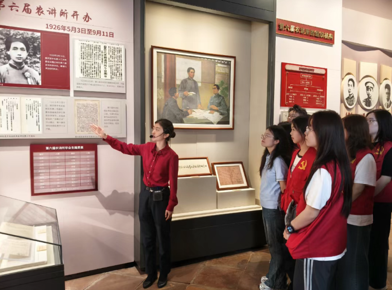 毛泽东同志主办农民运动讲习所旧址纪念馆位于广州市越秀区中山四路42号,在毛泽东同志担任所长期间,农讲所里培养了327名农民运动骨干,为推动全国农民运动和北伐战争作出了重要贡献。抵达纪念馆后,在场馆讲解员带领下,师生党员穿梭于农讲所的建筑群中,仔细浏览着纪念馆的复位陈列、史实照片和珍贵的历史遗存物。讲解员生动详实地讲解,为全体参与党员还原了一幅先烈为革命事业刻苦学习、认真钻研的场景,让参与者仿佛回到了那个风起云涌的时代,共同见证中国共产党早期对农民问题的深刻认识,见证革命先辈将马克思主义理论与中国实际结合的伟大实践。