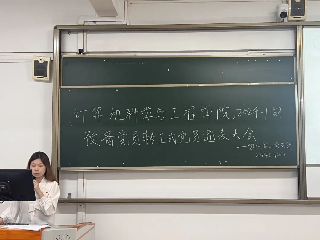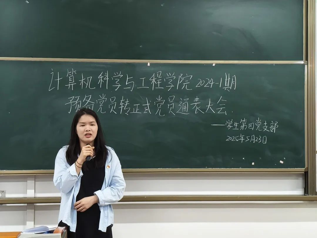 学生第四党支部书记陈彩风同志向转正的党员表示祝贺,并强调:转正既是政治生命的里程碑,更是担当作为的新起点。她勉励大家永葆入党初心,在科研攻关、社会实践、志愿服务中亮身份、树标杆,以青春之我谱写忠诚于党的奋斗篇章。