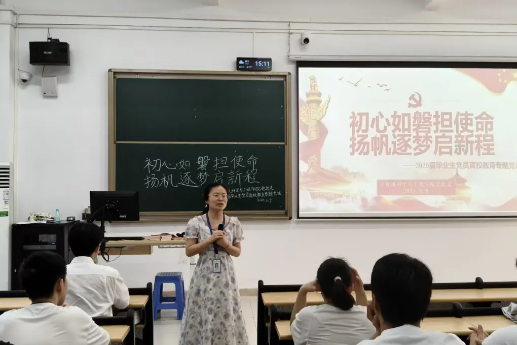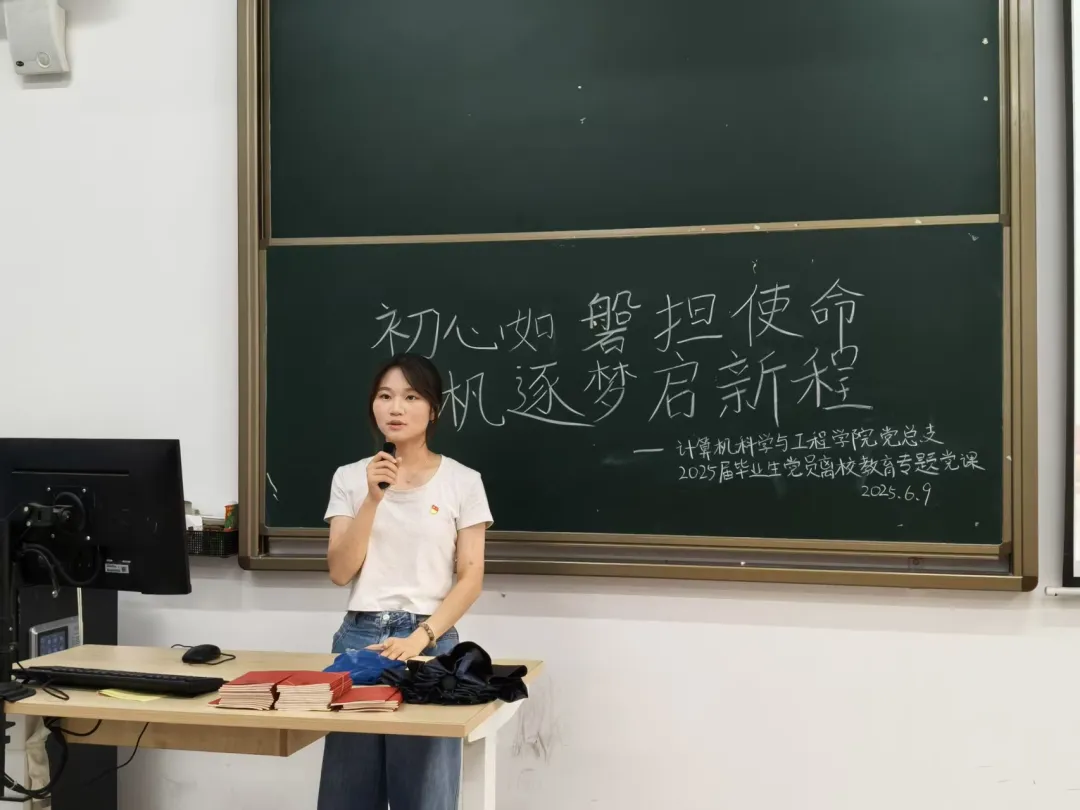 她对即将奔赴工作岗位的毕业生党员提出四点殷切期望:一是以信仰为精神火炬,坚守初心使命,在时代浪潮中勇担党员责任;二是永葆感恩之心,铭记母校培育之情,学院与学校将始终是毕业生最坚实的后盾与温暖的港湾;三是践行 “学用心志,行知诚明” 校训精神,志存高远、明德修身,以踏实奋斗扛起新时代青年使命;四是发挥先锋模范作用,积极投身就业实践,以文明离校的实际行动展现党员风采。