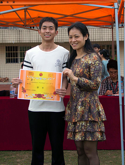 图三:辅导员杨平为计科142“one队”颁发二等奖