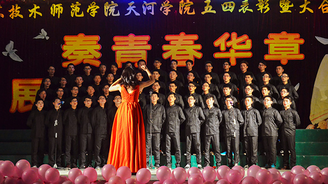 4月28日晚,主题为“奏青春华章,展时代风采”五四表彰暨大合唱比赛在体育馆圆满举行。莅临本次比赛的嘉宾有广东技术师范学院天河学院周玉霜副校长,党委肖海副书记,工会张连甫主席,以及各职能部门,各二级学院的领导与老师,并邀请了学保部蔡小锋常务副部长、艺术学院李丽丹副院长等作为本次大赛的评委。