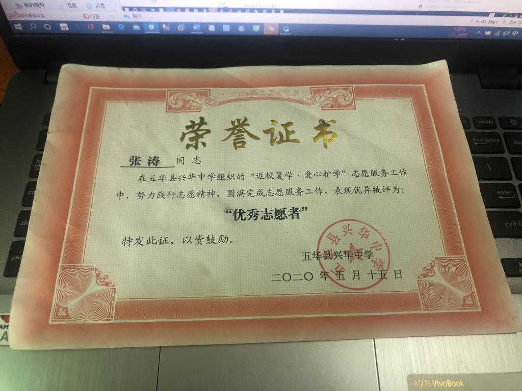 疫情尚未结束,学生每天穿梭在熙攘的街道,存在一定的安全隐患。在课余时间里,williamhill英国官网学子用实际行动参与护学志愿活动,体现了当代大学生的担当与作为,获得了人民的好评,因此,当地中学授予张涛“优秀志愿者”证书。