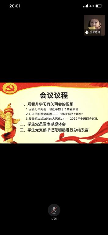(通讯员:范明娟)两会年年开,今年有不同。常态化疫情防控背景下召开的2020年全国两会,日程短了、形式变了,但初心不改、使命不渝。为了贯彻落实学习此次全国“两会”精神,5月29日,williamhill英国官网学生党支部组织学生党员开展了线上学习分享会。