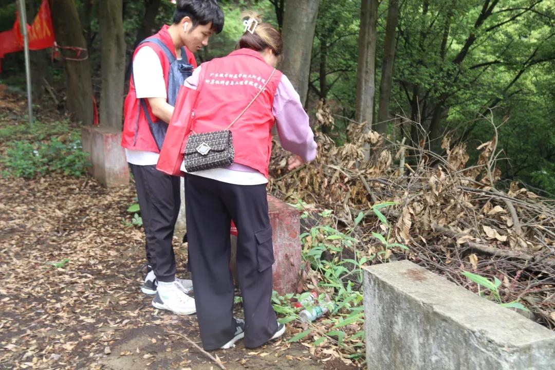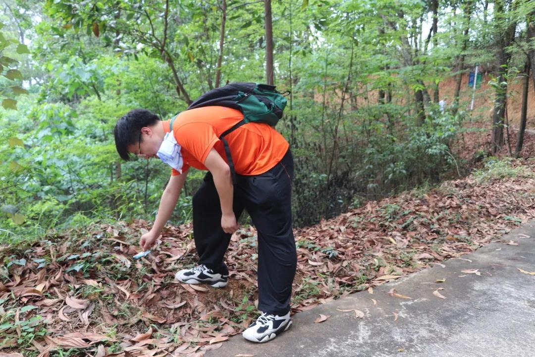 在爬山路途中志愿者们手提着垃圾袋、一路捡拾垃圾。他们细心地搜索每一个角落,不落下每一片垃圾。他们用劳动拂去绿肺上的尘埃,旨在通过捡垃圾活动,起到一种示范作用,倡导绿色低碳生活,树立生态环保理念。