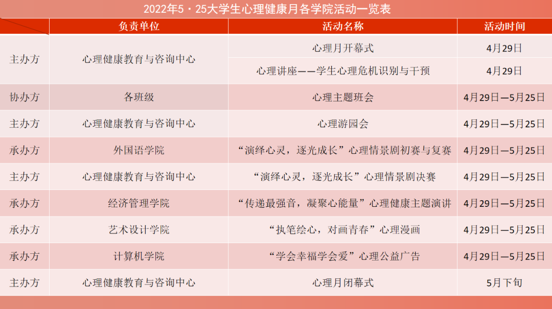 大学生心理月各学院活动一览表