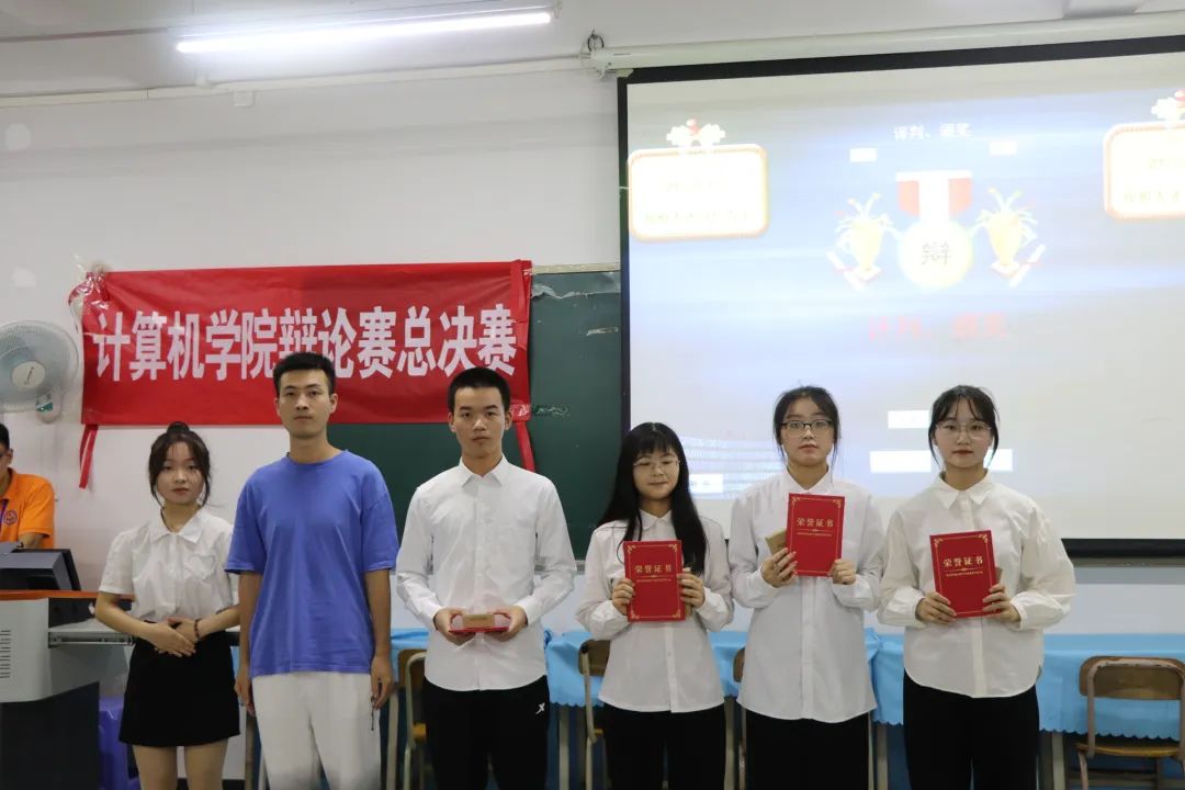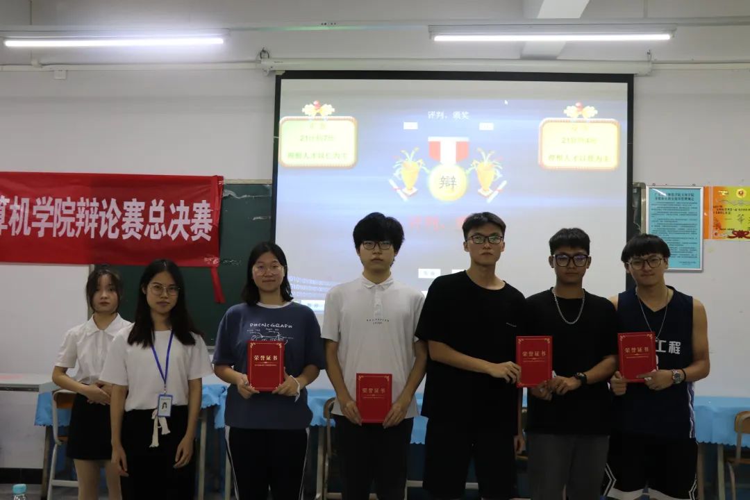 (梁津铭)5月29日晚,计算机学院第二届“辩今之大事、论我之未来”辩论赛总决赛在12栋1004课室举行。出席本次总决赛的嘉宾有计算机学院团总支书记钟卓玲、学生会执行主席张烨辉、黄之迷。外国语学院彭彤、韩蕊,计算机学院覃斌杰、钟嘉颖,计算机学院学生会执行主席王继浩担任评委。本次总决赛由团总支·生活部干事杨月月、李天桦主持。