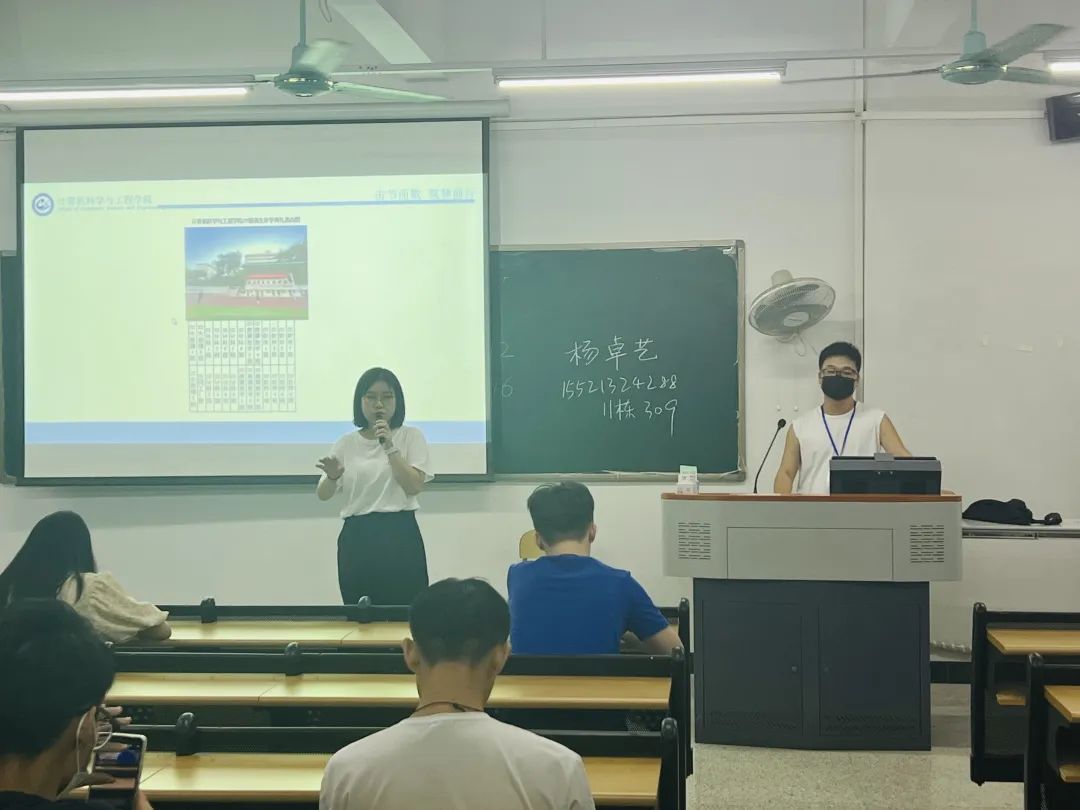 为了帮助同学们更快适应大学生活,助班还分享了自己的大学生活。紧接着辅导员根据现在的疫情情况让同学们做好防范措施,让同学们提高防诈骗的意识,同时做好明天军训的准备。