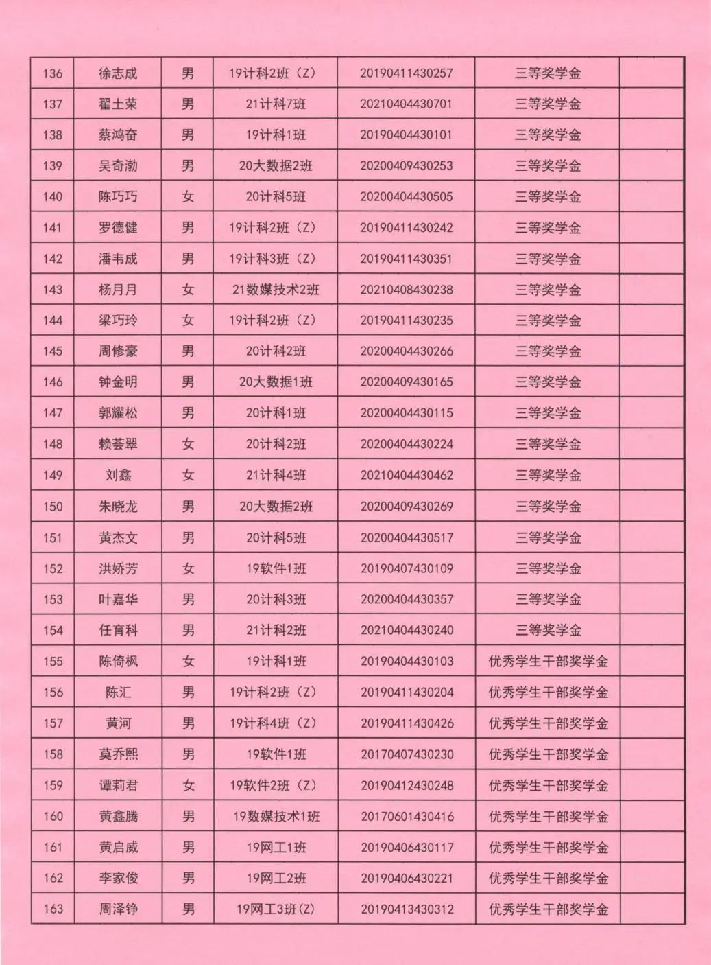 根据《williamhill英国官网学生奖励办法》,按照公平、公开、公正的原则,经各班推选、辅导员审核、学院审定,拟定williamhill英国官网2021-2022学年学生奖学金名单并进行公示,时间为2022.09.17-2022.09.19。