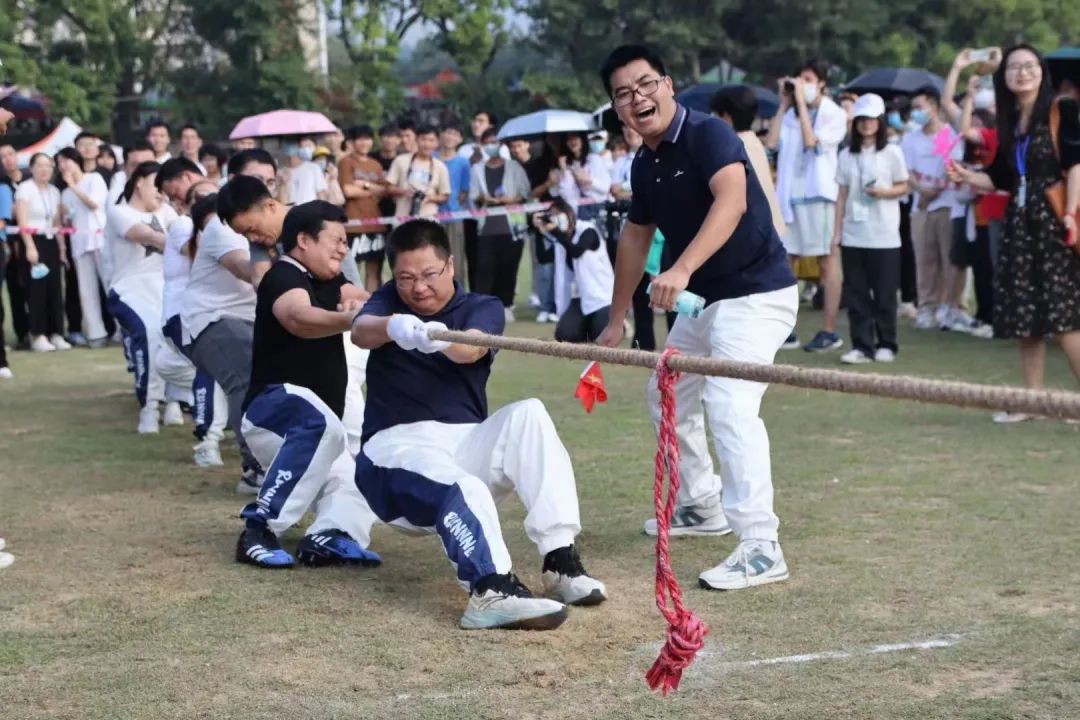 赛场上,williamhill英国官网参赛教师紧紧抓牢手中的绳子,齐心协力向后拉。院长原峰山和党总支书记蔡岳良带领教师啦啦队热情为各参赛老师们加油打气,欢笑声此起彼伏,热闹非凡。在这紧张时刻,各参赛教师们咬紧牙关,使尽全力,奋勇拼搏。