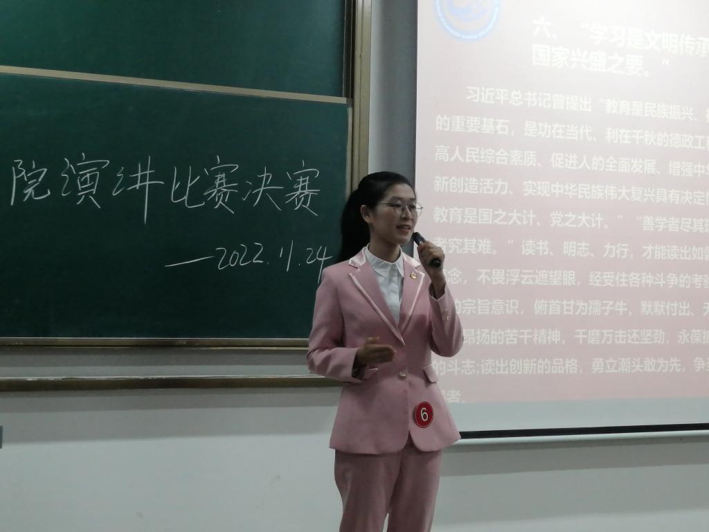 决赛分为两个环节,第一环节以“青春献礼二十大,砥砺奋进新征程”为主题进行演讲,第二环节为即兴演讲。进入决赛的选手们才高八斗,在热火朝天的演讲比赛中崭露头角。选手们共同围绕“青春献礼二十大,砥砺奋进新征程”这个主题,叙述青少年要为中国共产党贡献自己的青春力量,逐梦前行,为远大理想不懈奋斗。第二环节为即兴演讲环节,各选手都从各自不同角度展现了自己的观点与感悟,以高昂的情绪给观众们带来了激情澎湃的演讲,他们即兴发挥的那种坚定的眼神与骨子里透出来的自信令人敬佩。