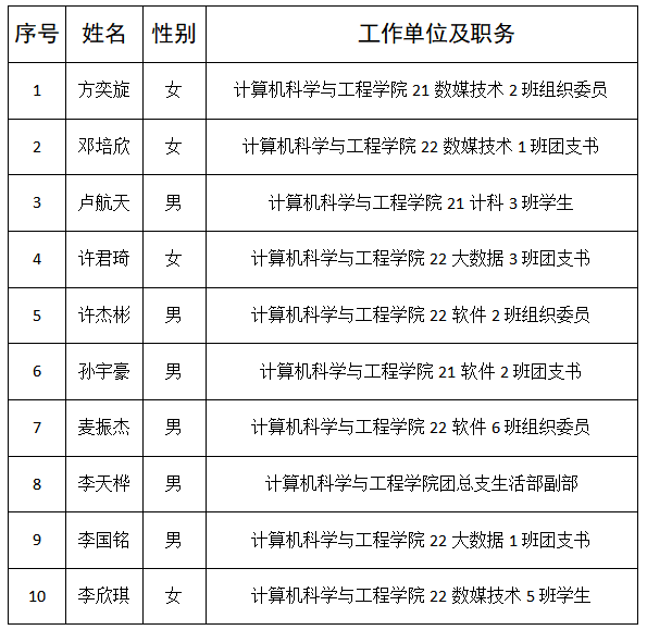 根据《中国共产主义青年团地方组织选举工作条例》有关规定和学校团委关于共青团williamhill英国官网第一次代表大会代表推荐选举工作有关要求,经学院团的全体委员会议研究,现将williamhill英国官网出席共青团williamhill英国官网第一次代表大会代表候选人初步人选公示如下(按姓氏笔画为序):