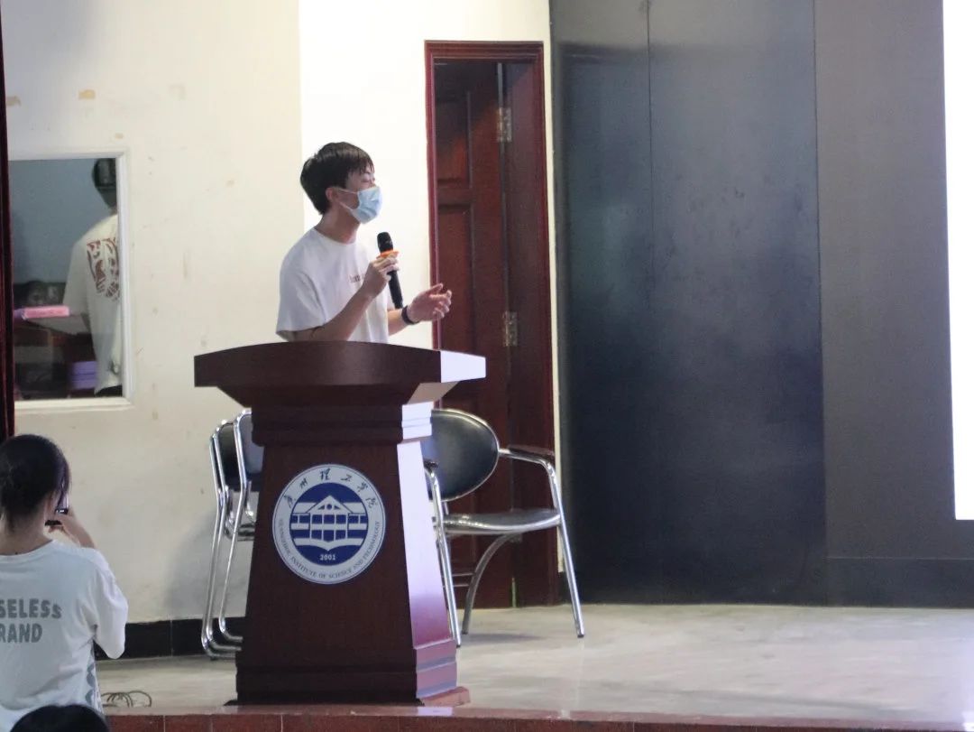 会上,学生会执行主席兼团总支副书记林瀚锐介绍本次迎新工作具体安排:迎新志愿者分为宣传组、报到组、宿舍分配组、注册组、室内分流组、登记组、接待组、宿舍指引组、后勤组9个小组;整个流程分为四步:1.引导新生寄存行李并前往报到处报到,2.带领新生到宿舍分配处进行分配,3.引导新生前往注册处盖章,4.带领新生到助班区登记信息后前往宿舍区。