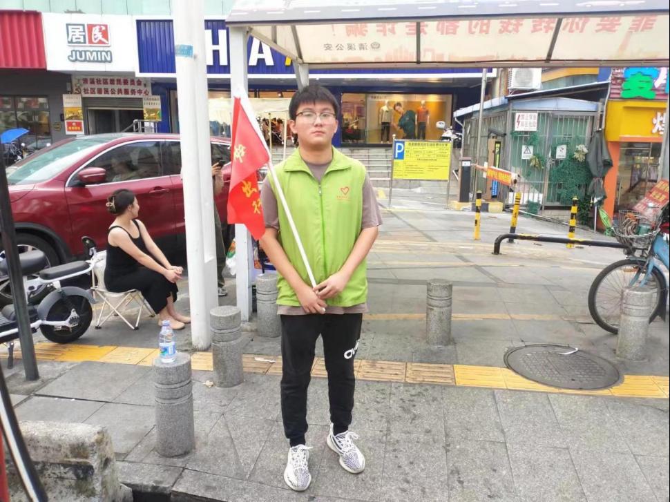 活动期间,黄鸿同学头顶烈日,身穿绿色马甲,手拿红色旗子,坚守在主要交通路口,维护交通秩序,对行人、电动车不遵守交通规则、乱闯红灯、乱穿马路、逆向行驶、不戴安全头盔和违规翻越护栏等行为开展文明交通劝导服务,引导群众自觉遵守交通规则,增强交通安全意识和自我防范意识。