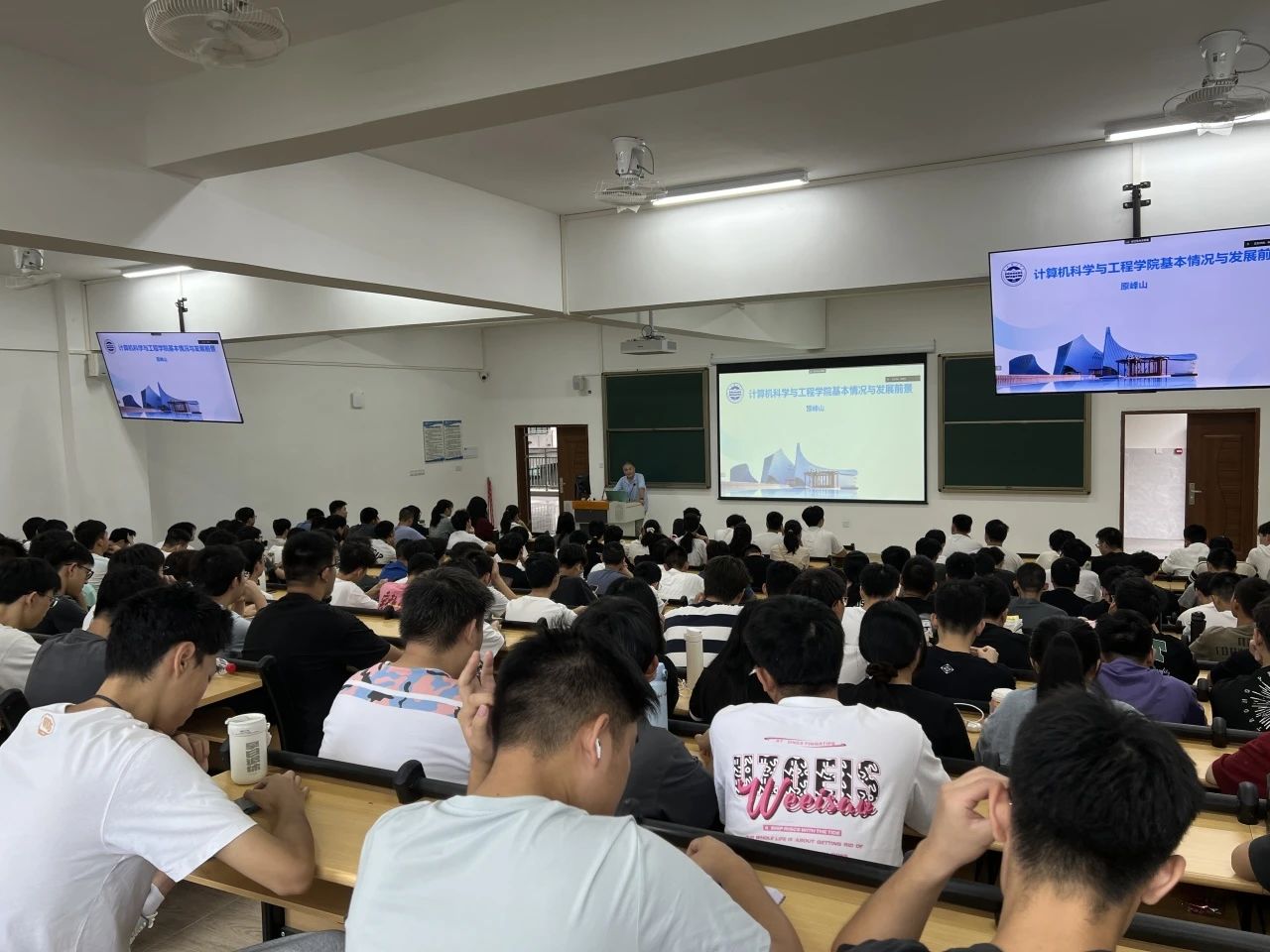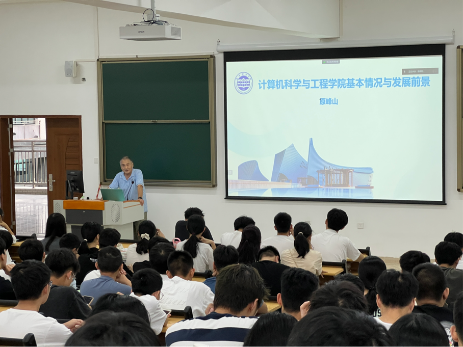 会上,计算机学院院长原峰山致欢迎辞。原院长向刚刚加入计算机学院的2023级普高新生表达了真诚且热烈的欢迎,并祝贺大家开启了人生的新阶段。随后,原院长向大家详细介绍了学院院情院史。原院长从学院概况、学科建设、师资力量、教学及人才培养等方面对计算机学院进行了全方位的介绍,全面展现了计算机学院强大的师资力量及可持续发展的潜力,展示了计算机学院的风采。