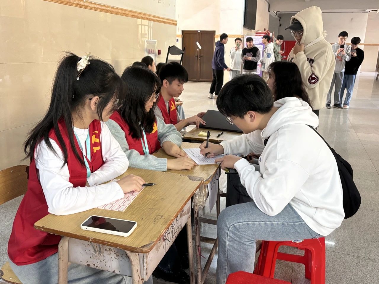 此次义务维修服务项目主要包括病毒杀除、系统重装、系统黑屏蓝屏、系统激活、软件安装、系统优化、硬盘分区、软件和外设无法正常使用、系统故障排除及解决。活动过程中,志愿者们和学生党支部成员有礼貌地接待来进行维修的同学,细心且负责的对接收的电脑进行登记以及维修,老师和同学们陆续带着需要维修的电脑前来登记,维修人员仔细检查,分析每台计算机存在的问题并利用自己的专业知识解决。无论是登记处还是维修处的工作人员都按部就班,有条不紊地忙碌着。