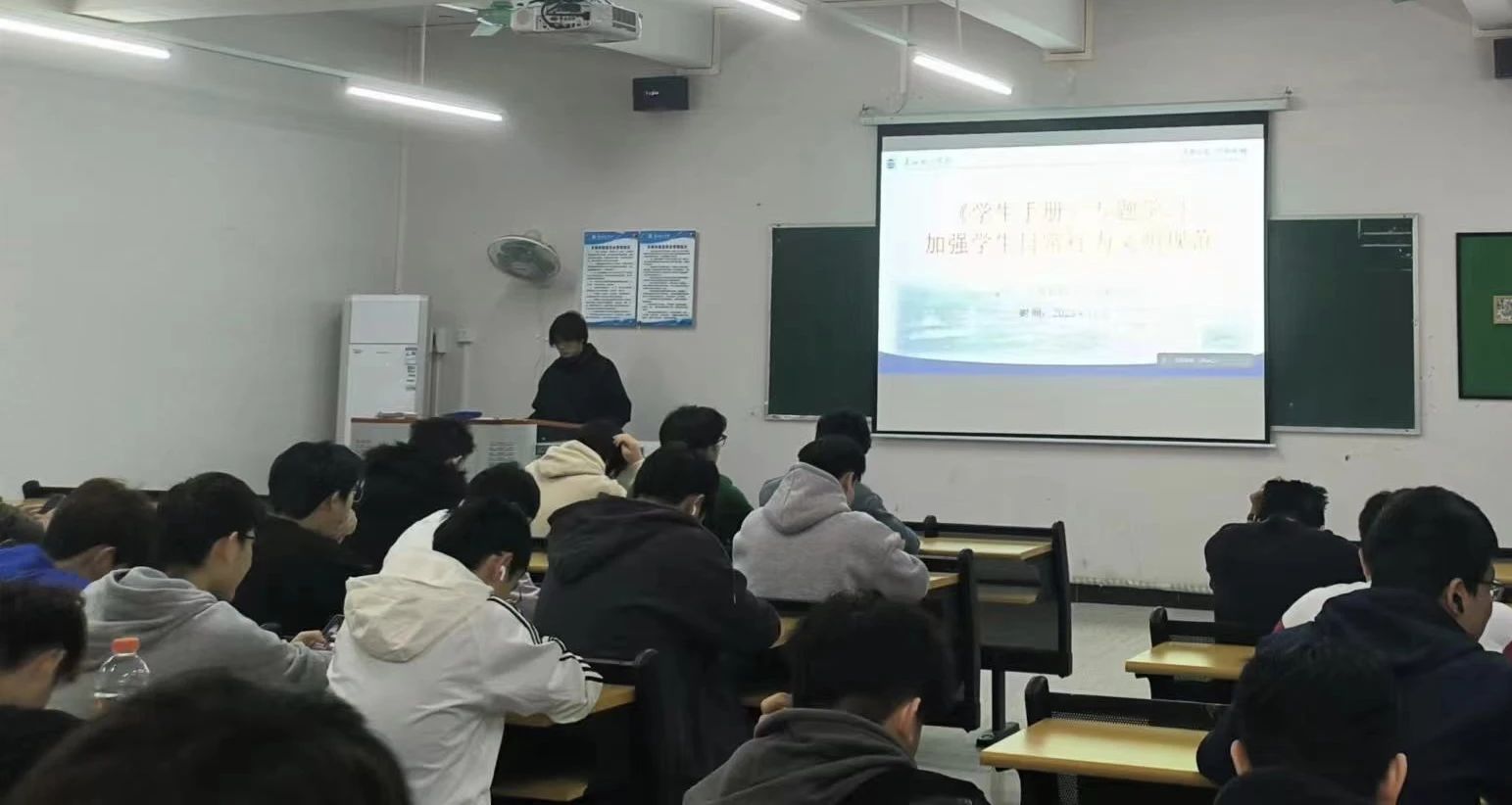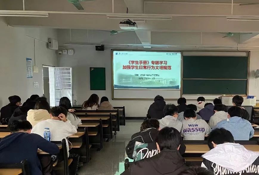 (通讯员:陈依琪)为进一步增强学生自我教育、自我管理、自我服务的意识,促进williamhill英国官网学生对各项校规校纪的进一步学习,提高遵纪守规的意识,williamhill英国官网于11月16日下午在各班班会教室开展《学生手册》专题学习主题班会,本次会议由各班班长主持,计算机学院全体学生参加。