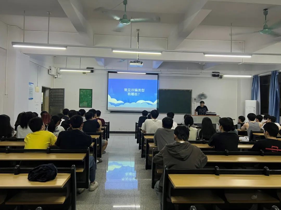 班长首先向同学们普及预防诈骗的相关知识,讲述常见的诈骗类型以及一些经典案例,以及对此类型诈骗骗术的揭露,引导大家从思想上引起重视,增加防范意识,学习掌握基本的安全知识和自我保护的技能,提高防诈骗意识。