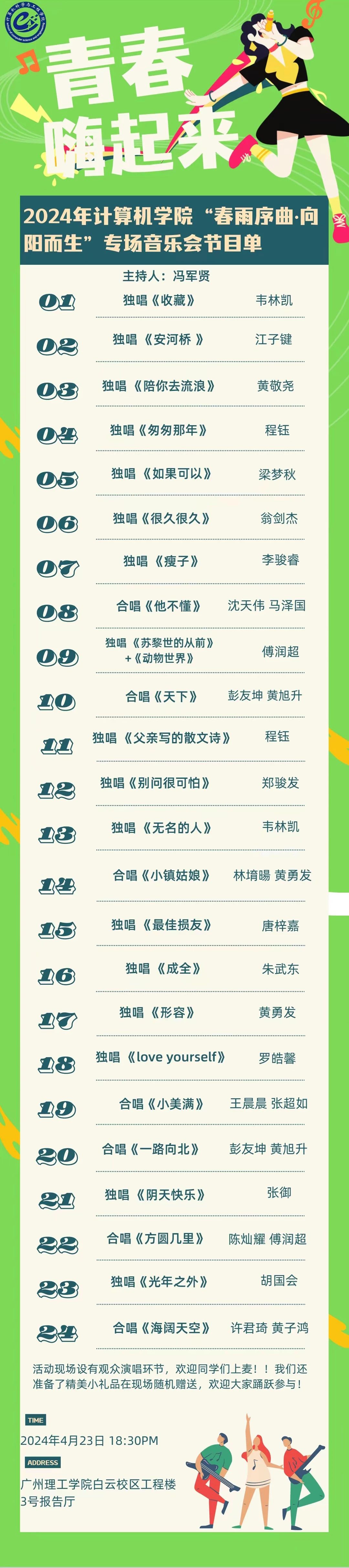 二、表演节目中将穿插多个观众自由上麦环节,欢迎同学们来到现场一起嗨!现场还将随机为观众发放精美小礼品哦!