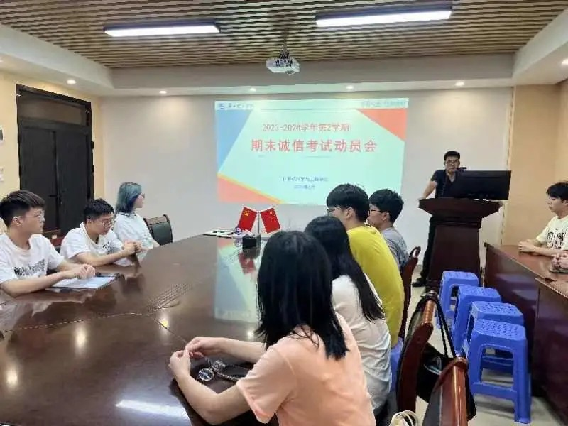 会议伊始,蔡书记指出,诚信是立人之本,更是我们每一位学子应该坚守的底线。在考试中,诚信不仅是对自己学业的尊重,更是对他人努力的尊重。随后,蔡书记强调学校和学院对于考试作弊行为持有零容忍的态度,一旦发现将严肃处理,并向同学们详细介绍了学校新修订的关于期末考试违规违纪的相关文件,列举了以往的违规案例及相关处分情况,以这些实际案例警示同学们切勿以身试规。