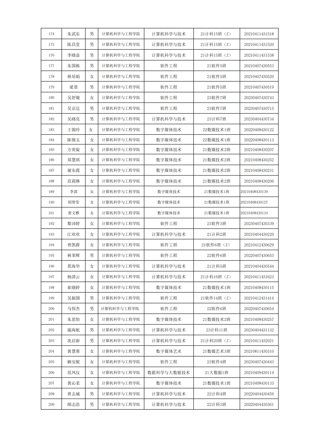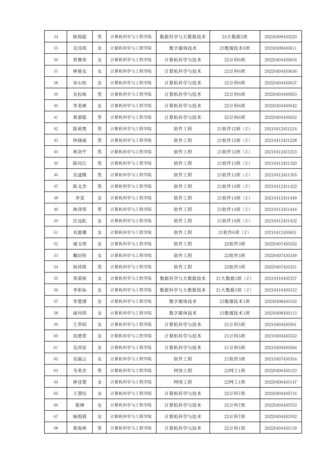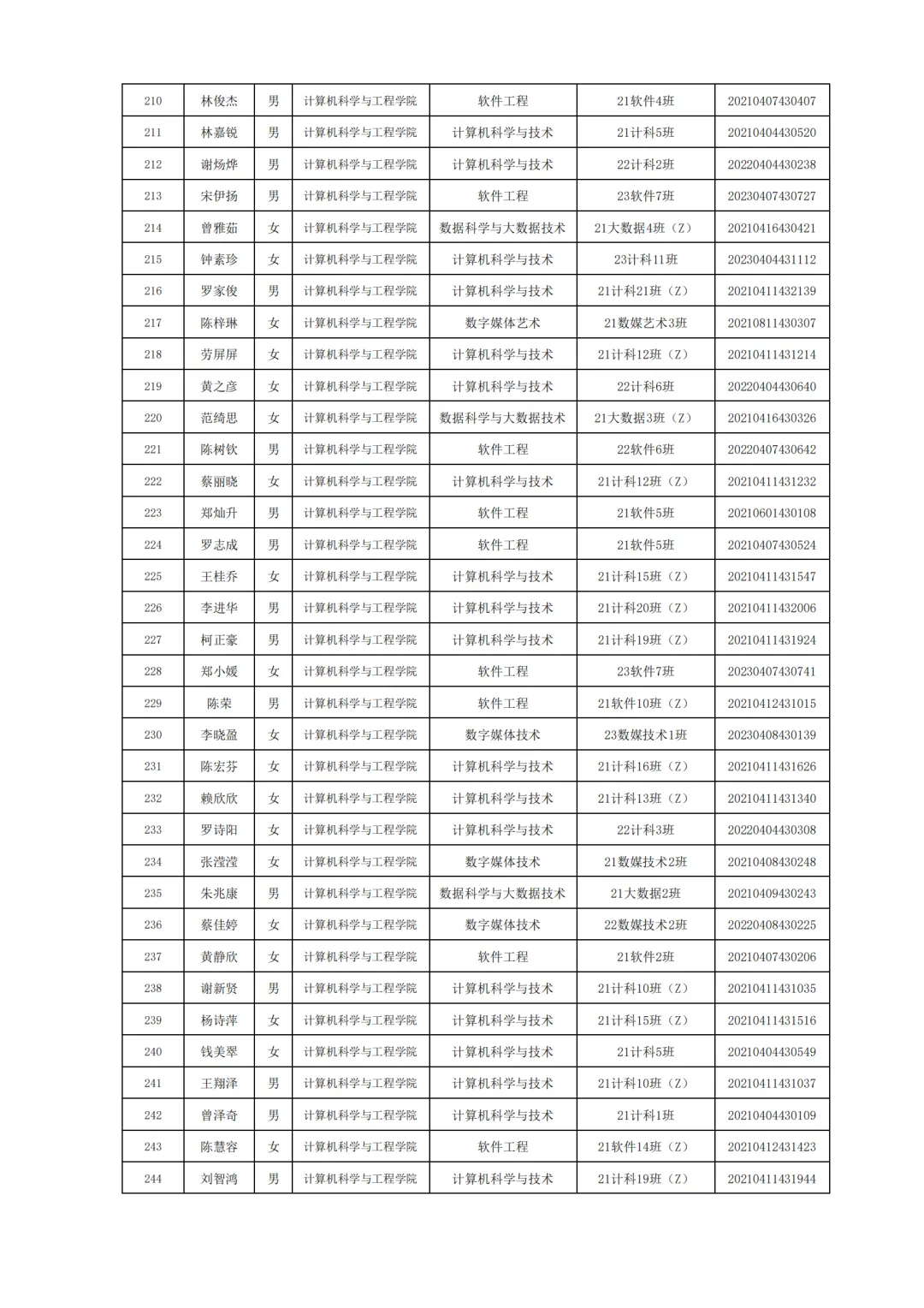 国家励志奖学金评选名单