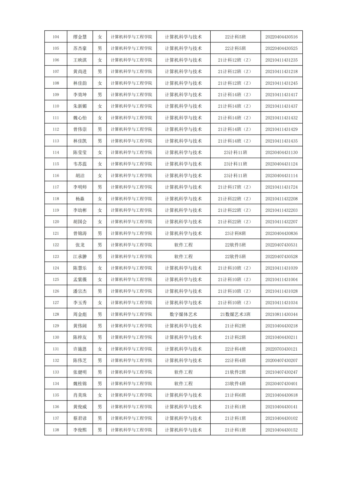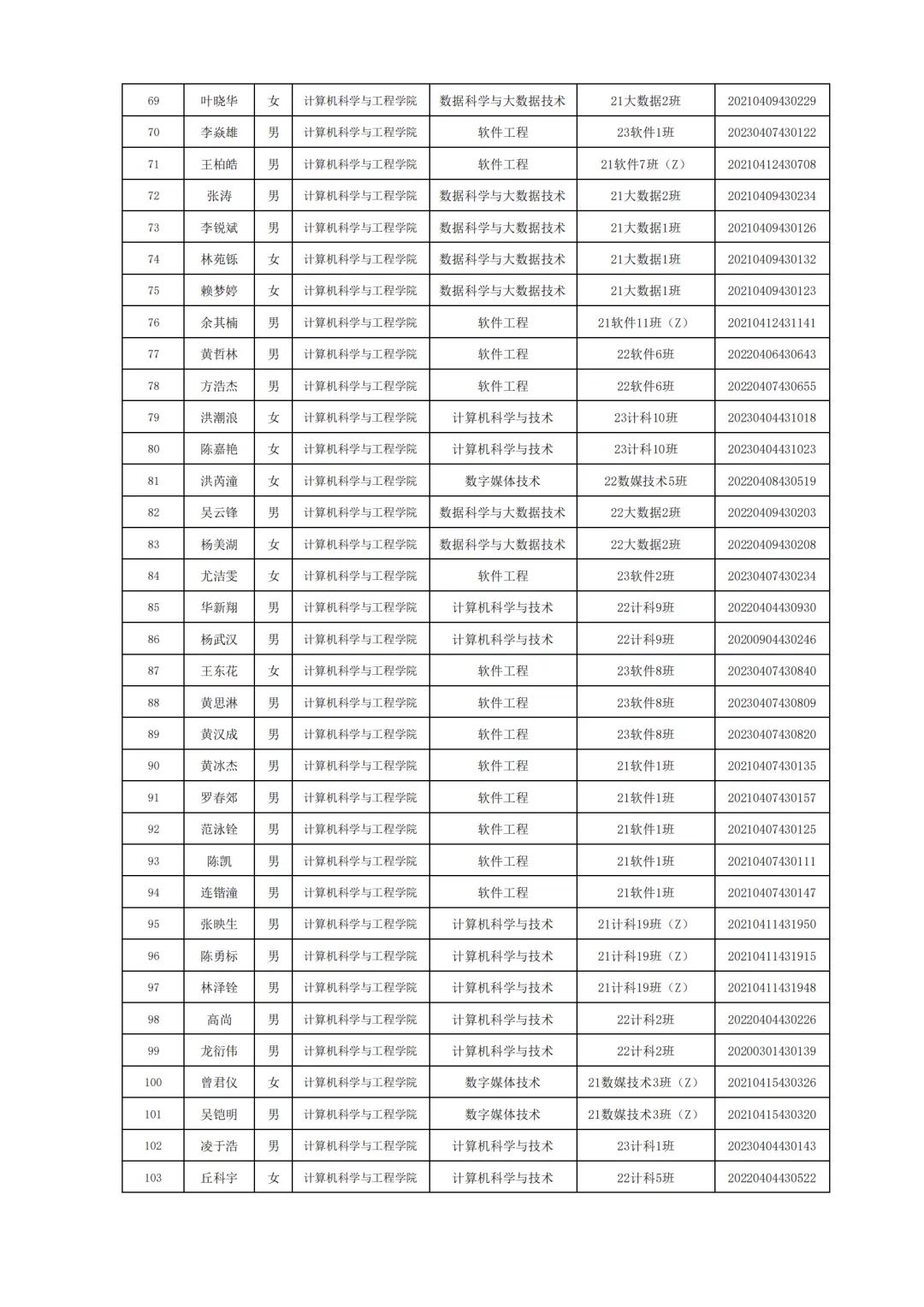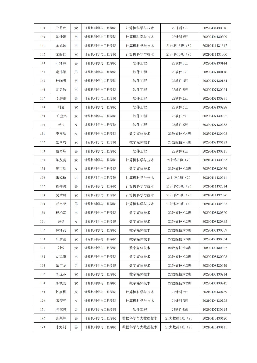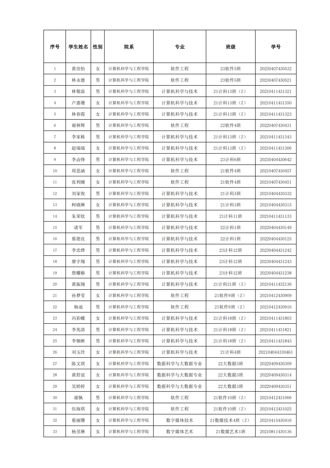 国家励志奖学金评选名单