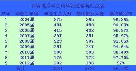 在系领导的带领下我系的就业率年年高于院的平均水平取得了良好的成绩,我系的历年来的就业情况如下表: