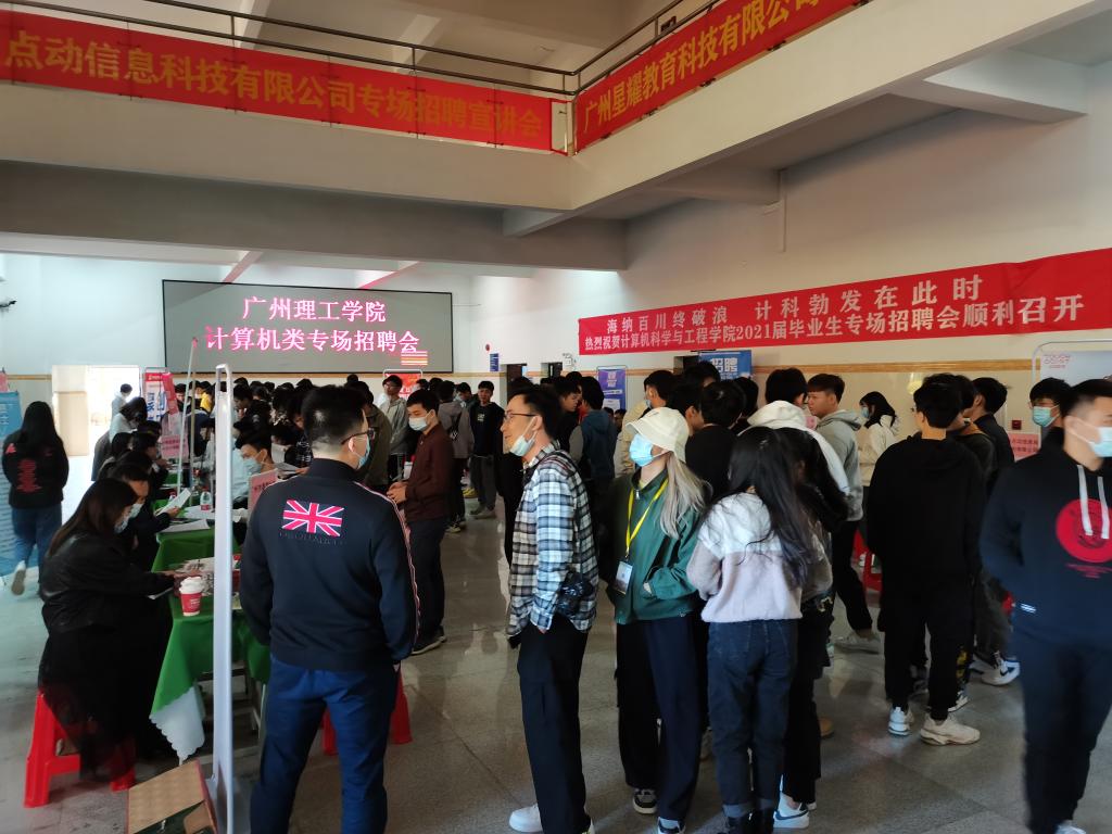 招聘活动主要面向计算机学院应届毕业生,也提供部分大二、大三学生的实习岗位。学院700余名应届毕业生到场参加,部分非毕业班学生也主动到现场观摩学习。本次招聘会成效显著,多名同学与企业达成了初步就业意向,现场的火爆气氛一直持续到招聘会尾声。招聘会结束后,广州市领先互联网营销运营服务商星耀教育科技有限公司和行内云座应用规模最大的信息互动服务商广州点动信息科技股份有限公司还在校内举行了专场宣讲会,方便学生更加深入了解企业文化和行业知识。