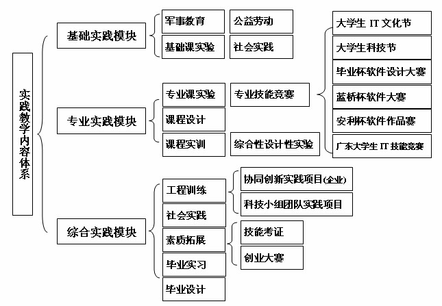以信息产业需求和就业为导向,紧跟社会实际需求,结合本专业特点和人才培养要求,增加实践教学比重,确保专业实践教学必要的学分(学时)。改革实践教学内容,改善实践教学条件,创新实践教学模式,增加综合性、设计性实验比例,倡导自选性、协作性实验,强化岗前能力培养环节。配齐配强实验室人员,鼓励高水平教师承担实践教学。加强实验室、实践基地和实践教学共享平台建设,与合作企业共同构建协同创新实践教学平台。同时,鼓励专业教师将实际项目引入实践教学环节,以项目任务驱动教学,增强实践教学的实战性。